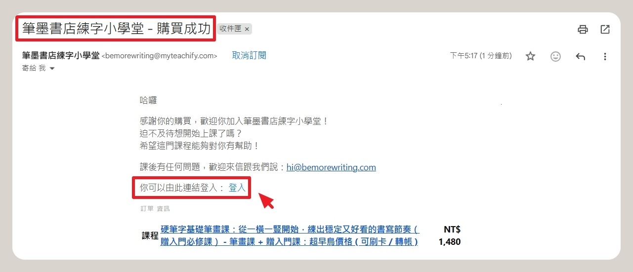 📌課程購買成功或啟用帳號的郵件,裡面有包含課程連結,一定找到這封郵件!