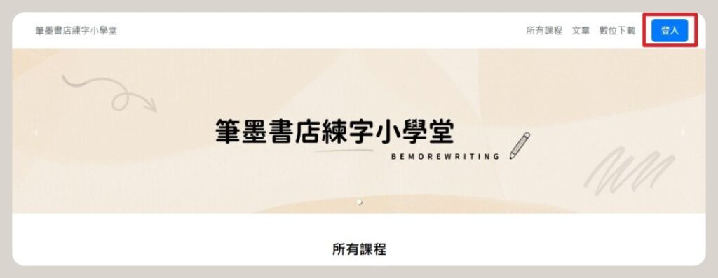 登入課程系統:https://course.bemorewriting.com/,按右上角的「登入」。